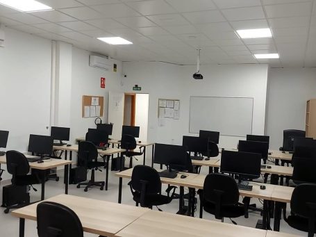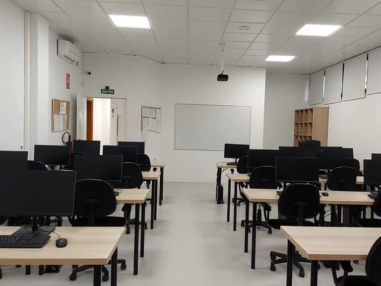 Espacio moderno con aulas informatizadas, perfecto para formaciones relacionadas con nuevas tecnologías, administración, gestión, idiomas y cursos orientados al aprendizaje digital.